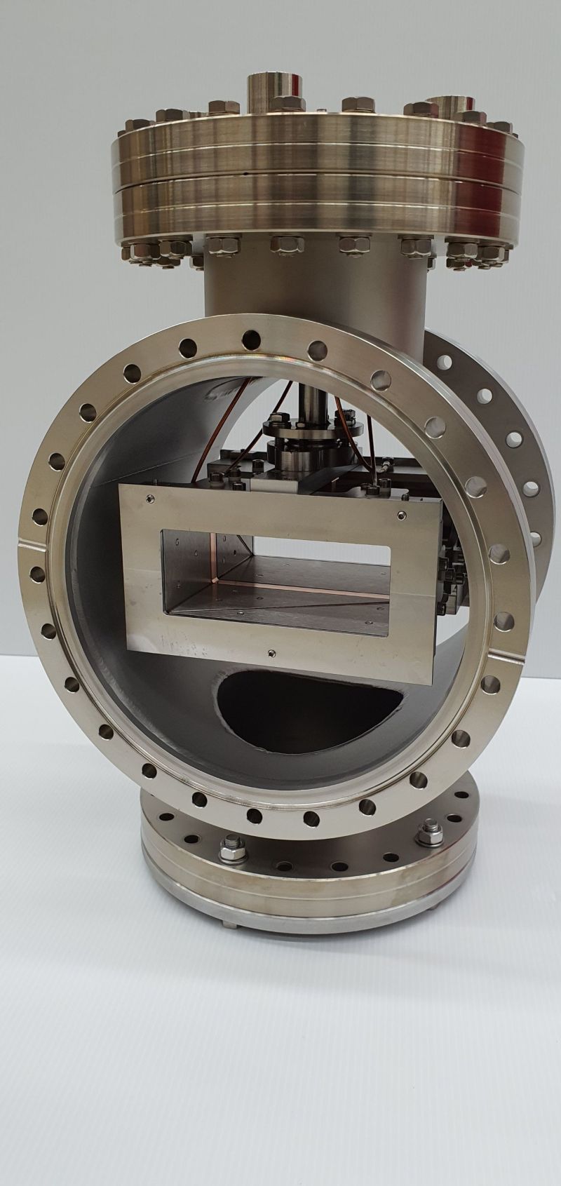 NTG has fulfilled a long-cherished dream with the purchase of a vacuum brazing furnace. Our new addition to the machine park goes by the name of XVAC 4374, was created by the company XERION and follows the principle of a bell furnace. We enjoy the qualities of a very precise overall system that meets the desired specifications, consisting of a vacuum pump system, a double-walled water-cooled boiler with 5 heating zones, a voltage transformers, a control system and a chiller for the heat exchange to the ambient air. The available brazing volume is a vertical cylinder with a diameter of 850 mm and a height of 1000 mm, ideally adapted to the maximum possible dimensions in our ceramic segment. Of course, we do not want to limit the application range of the furnace to ceramics-metal joints only, but think in general of all applications that come into question for this joining process. Please do not hesitate to contact us!